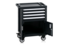 De fyra lådorna är fullt utdragbara med kullagrade expansioner och går smidigt att låsa med centrallåsning. Dörrarna kan låsas separat. Vagnen är utrustad med fyra hjul, varav två är svängbara och kan låsas vid behov, ergonomiska handtag för flexibel förflyttning och en smart toppskiva för extra arbetsyta. Tillverkad i en robust konstruktion med påkörningsskydd på alla hörn och perforerad yta för verktygskrokar på sidorna. Perforeringen har ett hålavstånd på 38 mm cc och en hålbild på 9x9 mm.